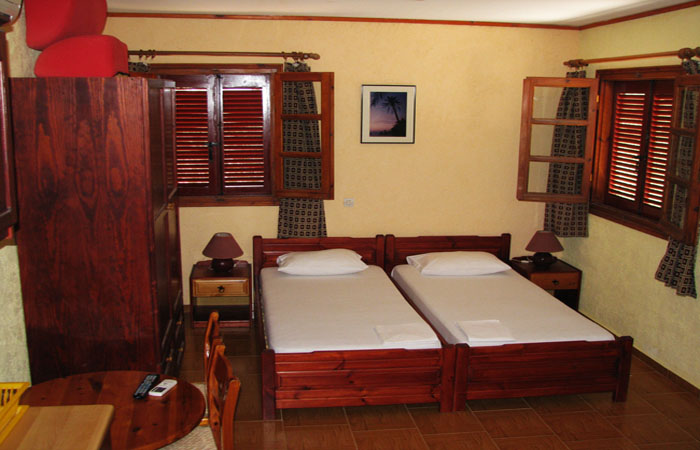 Every apartment provides 2 single beds and a sofa that can change to double bed or 2 single beds , that provide's hospitality till 4 persons in it's one.Just on the split level apartment and a double room apartment we can add a camp bed and sleeps 5 persons..All Apartments equipped with flat TV where you can connect all your portable devices or flash memory sticks to listen your favorite music or to watch your favorite movie, A/C and WiFi internet.